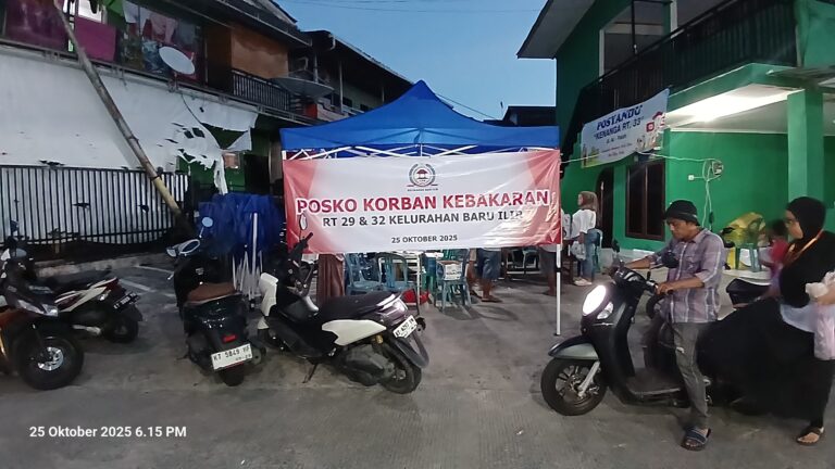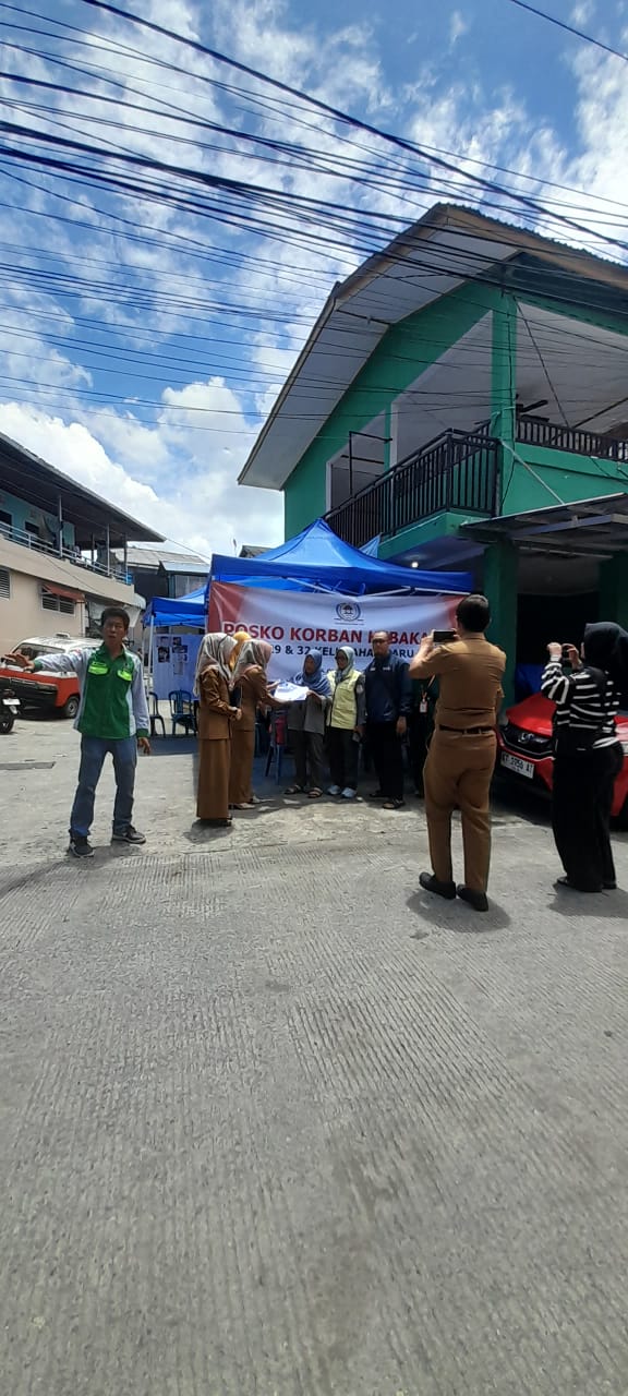 Posko Bantuan Korban Musibah Kebakaran segera didirikan dan dipimpin langsung oleh Ketua LPM Kelurahan Baru Ilir, Taufik Qul Rahman.