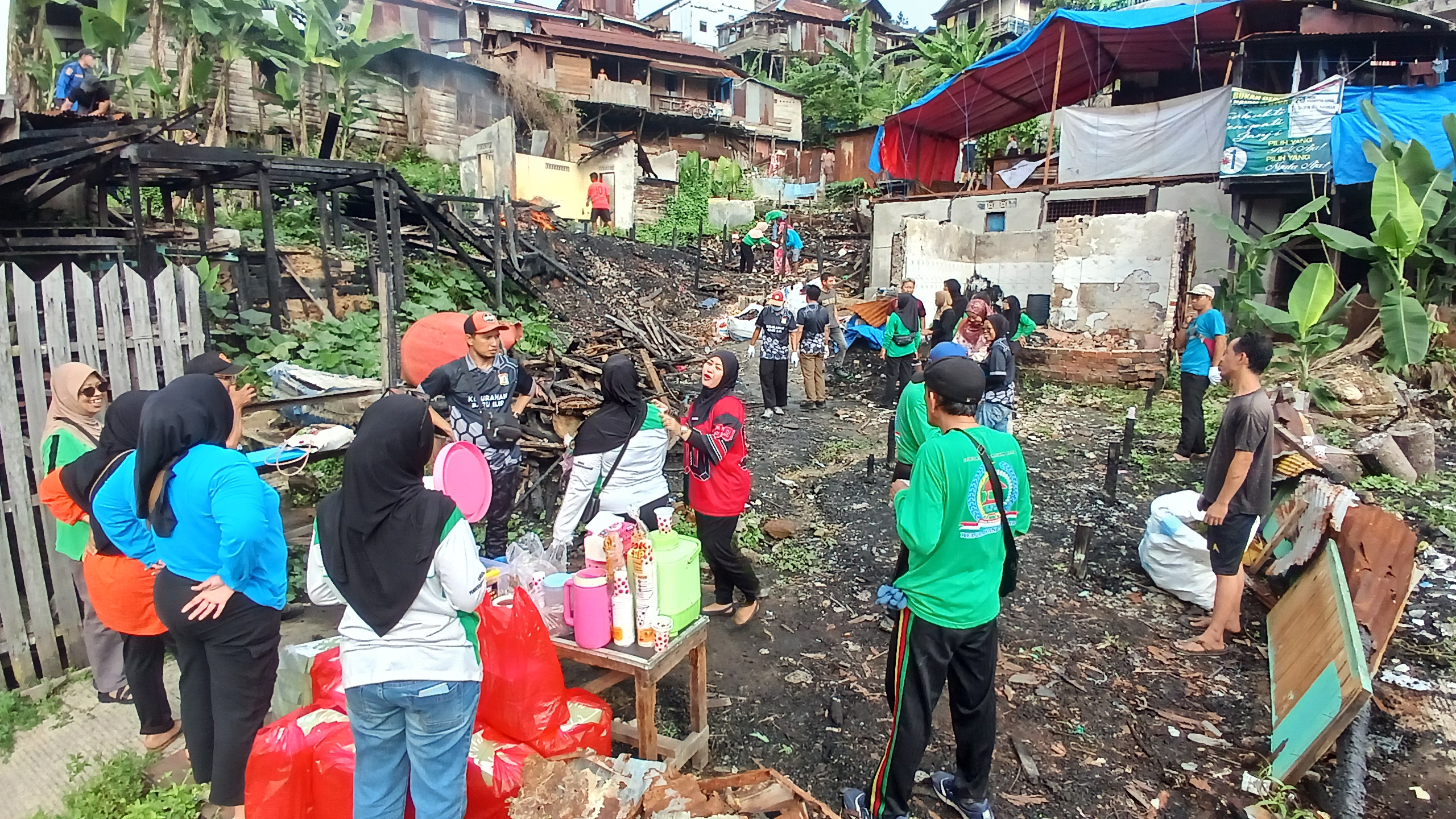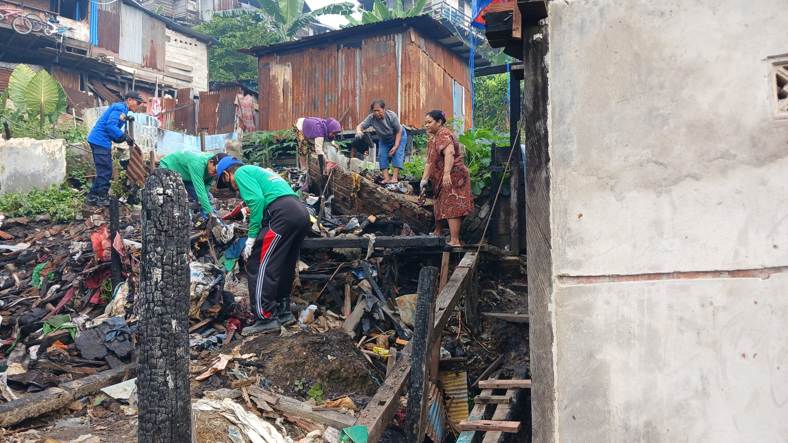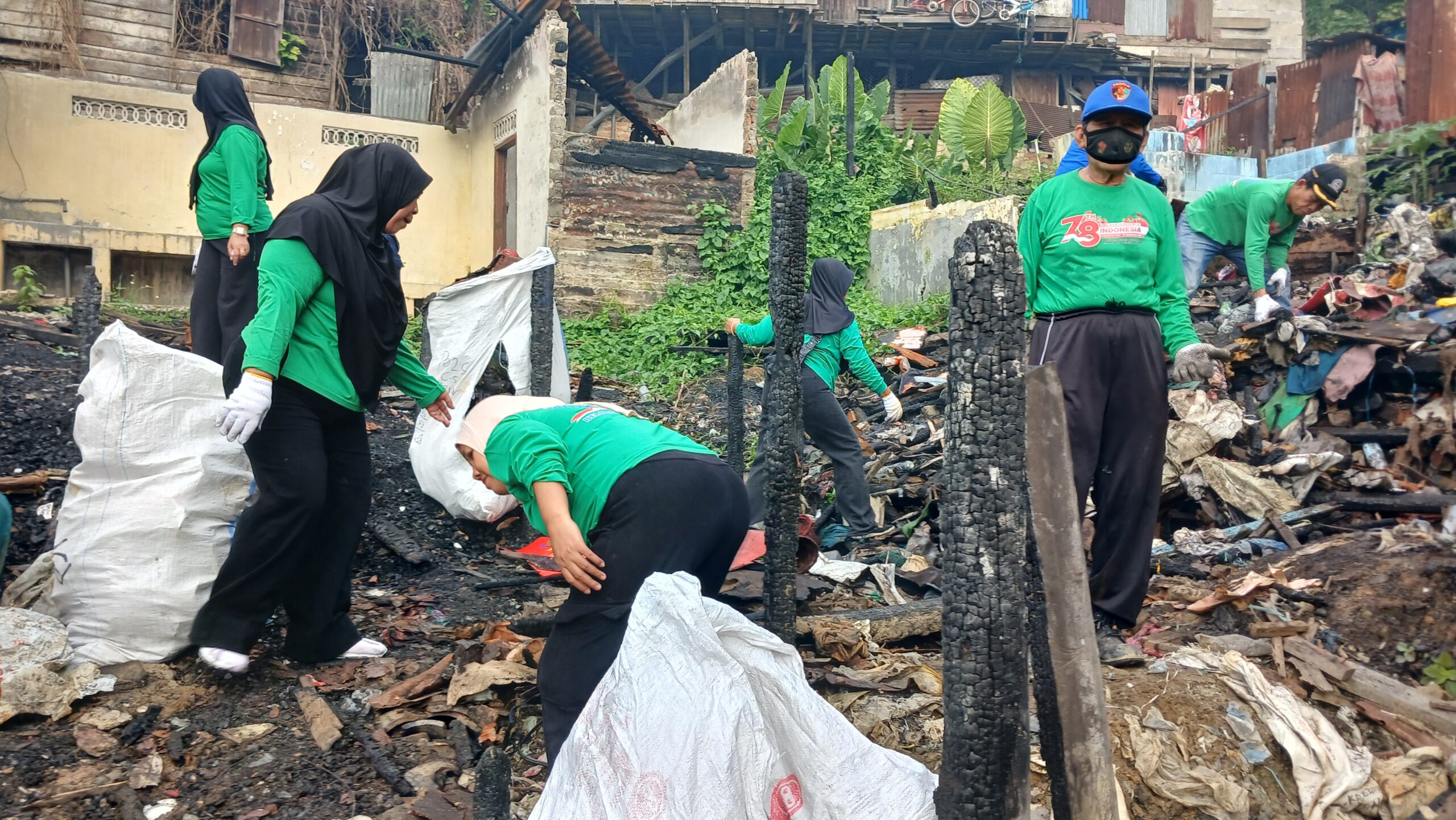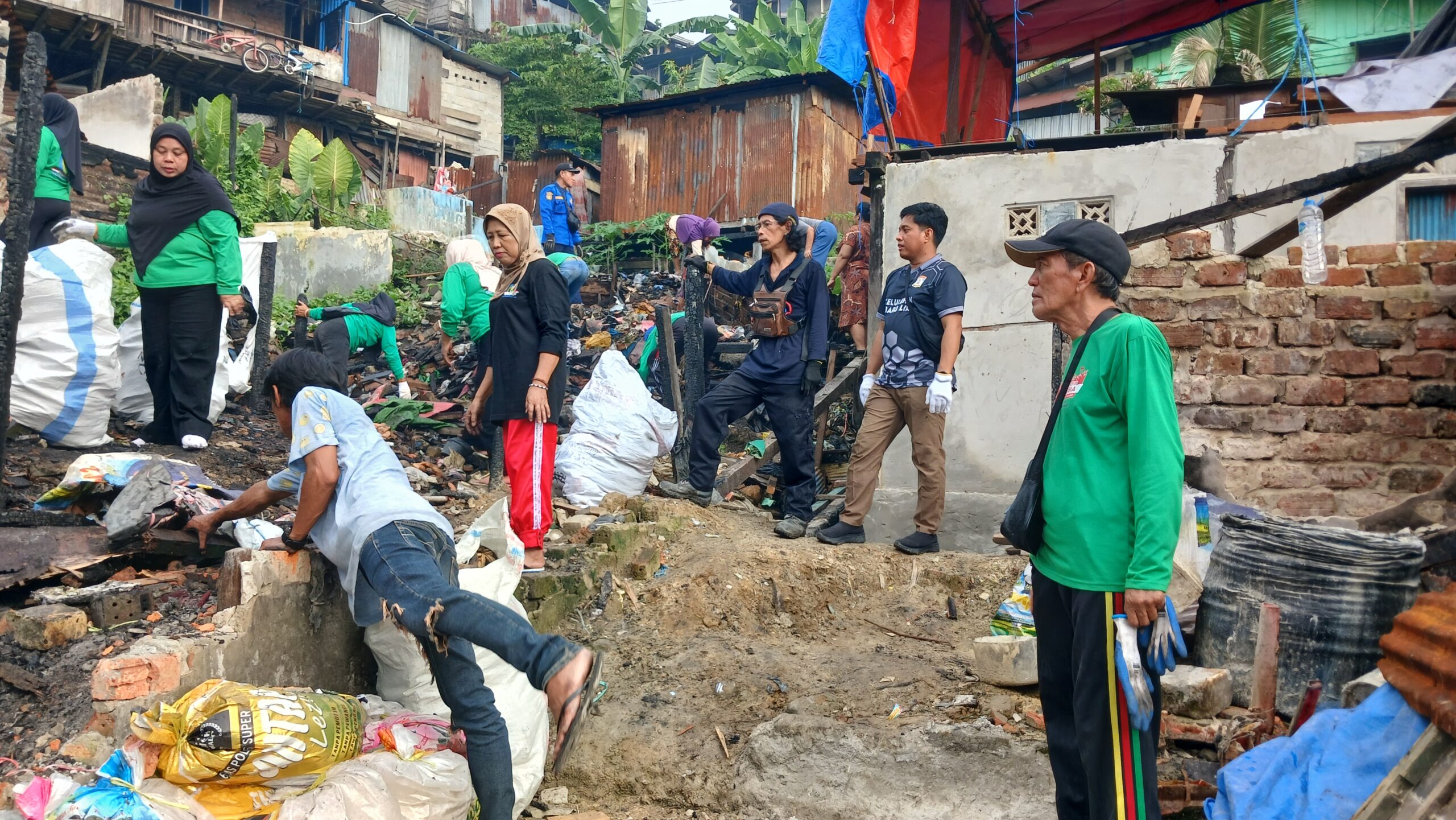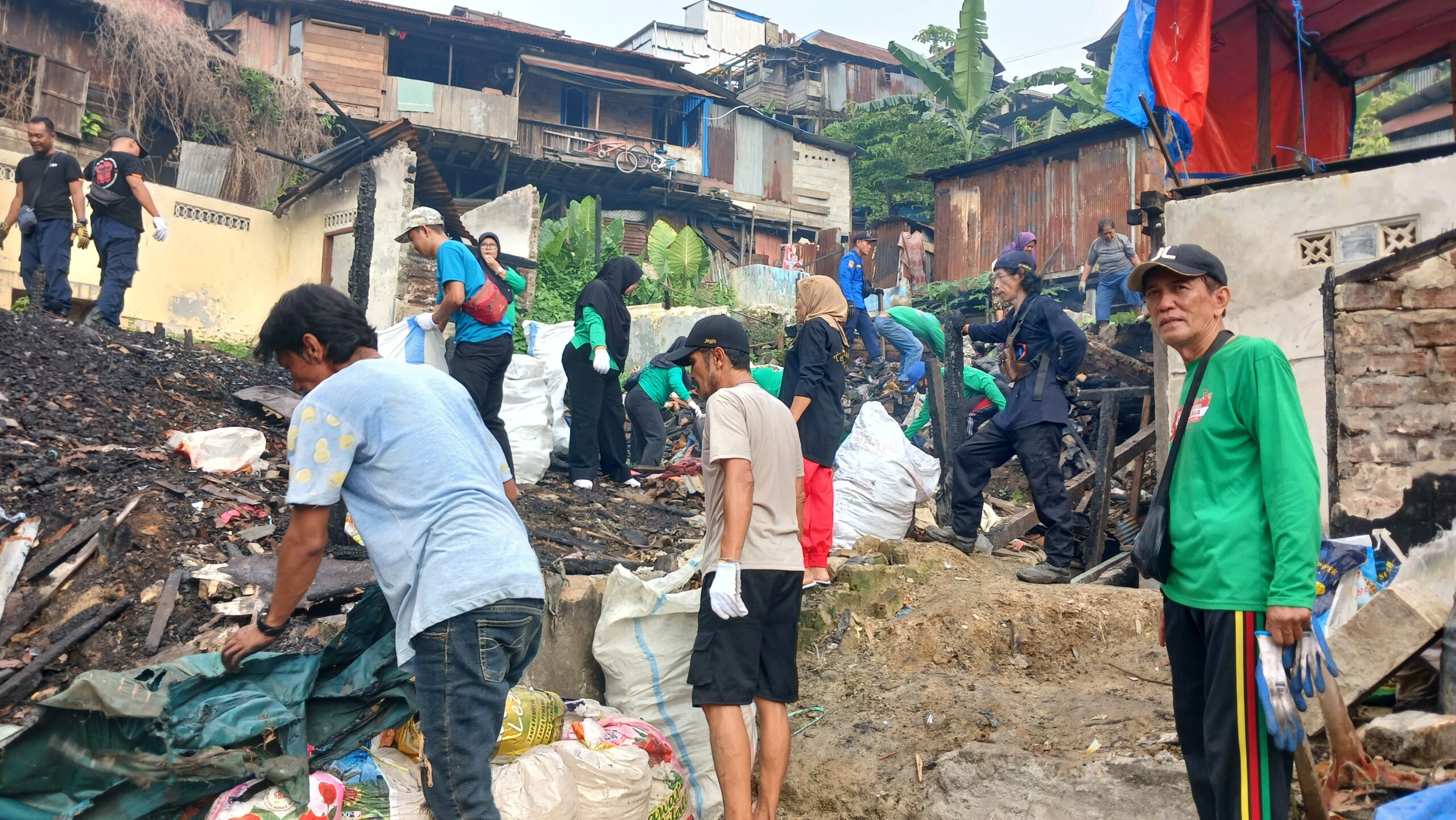 Antusiasme peserta sangat tinggi dengan kehadiran lebih dari 100 personel yang bahu-membahu membersihkan puing-puing dan sampah di lokasi terdampak kebakaran. Dukungan dari personil BPBD sangat membantu dalam percepatan evakuasi material sisa kebakaran yang sulit ditangani secara manual.